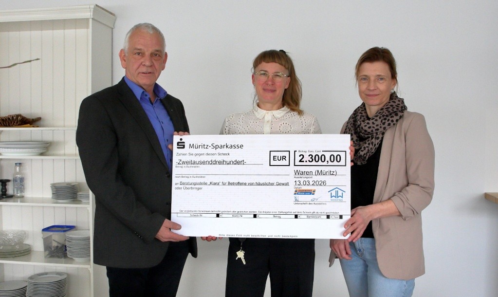 Am Freitag, dem 13. März 2026, war für zwei soziale Einrichtungen in unserer Region ein echter Glückstag. Gemeinsam mit der Warener Wohnungsbaugesellschaft mbH (Wogewa) konnten wir, die Stadtwerke Waren GmbH, jeweils 2.300 Euro an das Hospiz „Müritzpark“ sowie an die Beratungsstelle „Klara“ für Betroffene von häuslicher Gewalt überreichen.